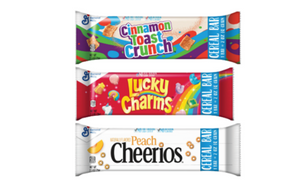 Available in a larger format (2.5 oz.) that appeals to kids of all ages, the individually-wrapped cereal bars come in three exciting flavors: Cinnamon Toast Crunch, the #1 K-12 cereal brand1, as well as Peach Cheerios and Lucky Charms—new to the cereal bar line-up available in schools.